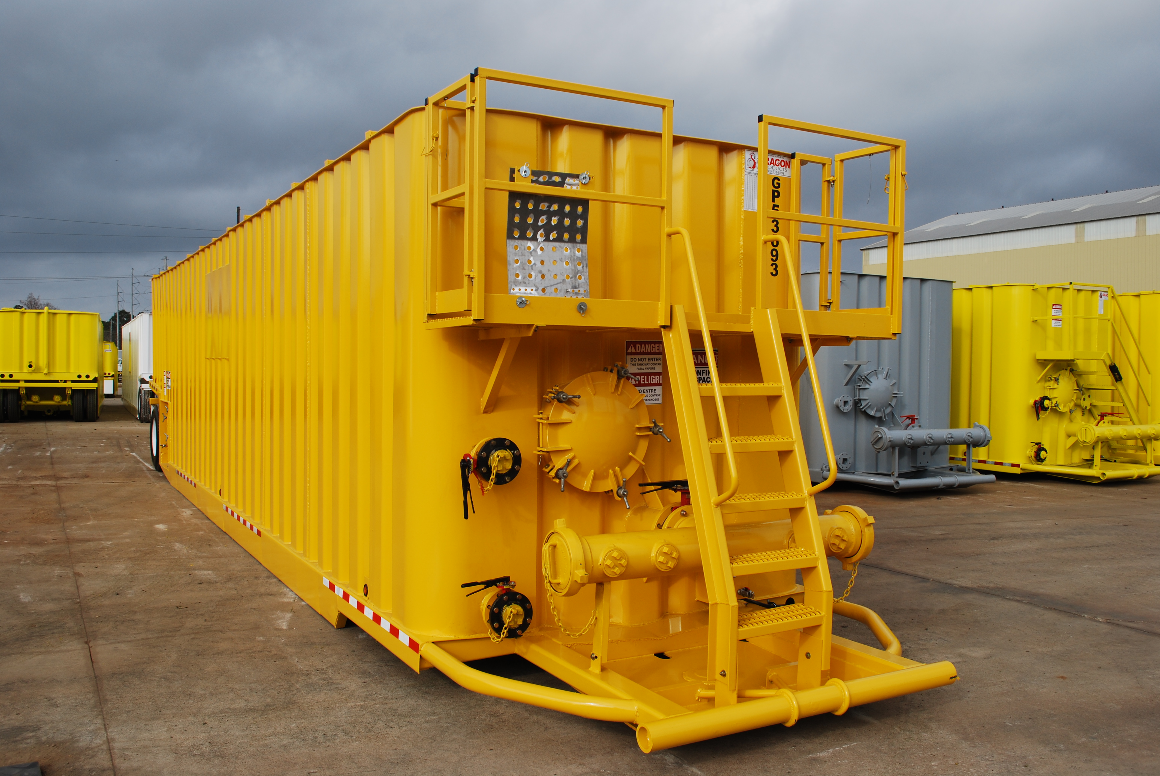 Dragon Model 500-Barrel Corrugated Wall, Liquid Storage Tanks come Equipped With New Runnings Gear, 10 mil DFT Chemical Resistant Liners. All Tanks Are Steel Grit Blasted And Painted To Your Specs. All Are Built From New 1/4″ Heavy Duty Corrugated Steel. You Design, We Deliver. All Models Available Now!